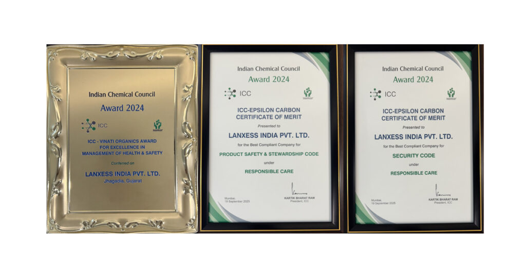Commenting on the achievement, Roy Choudhury said “At LANXESS, safety and sustainability are at the core of our business. These recognitions are a testament to the rigorous safety standards we maintain and the responsible practices we follow to ensure the safety of our employees and operations. From product development and production to use and disposal, we are committed to minimizing risks and maximizing safety across the product lifecycle. We are thankful to Indian Chemical Council for these honors.”